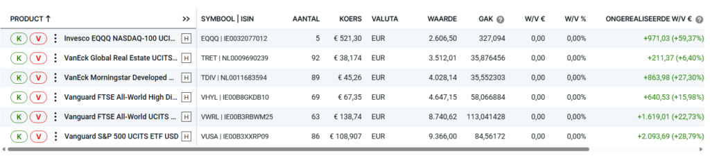 Total portfolio return: €7500 (23% based on current portfolio worth)